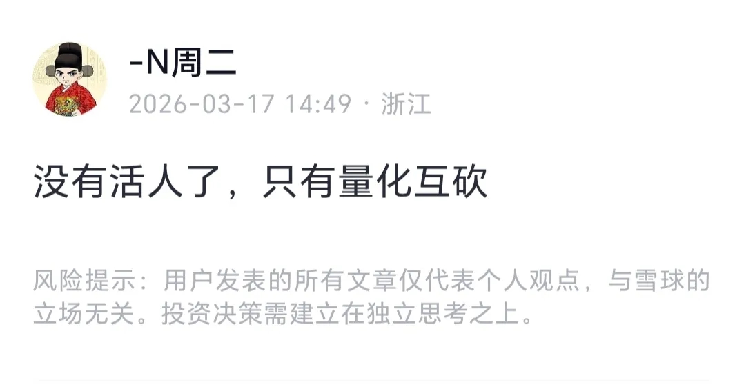 N周二发文:只有量化互砍。