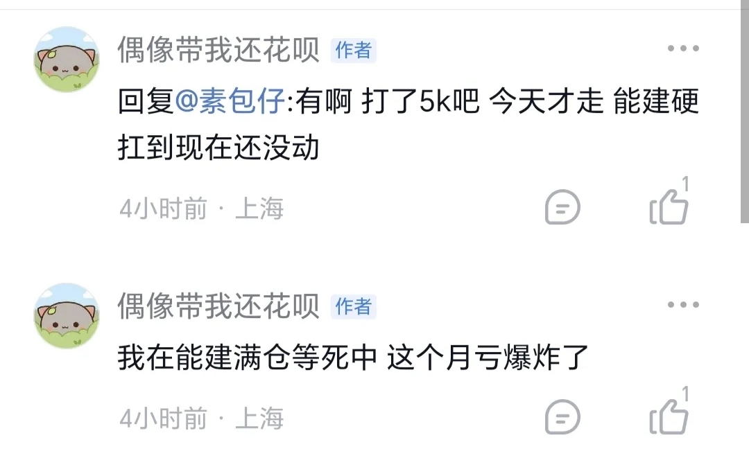 1、周二花呗哥留言:这个月亏爆炸了!