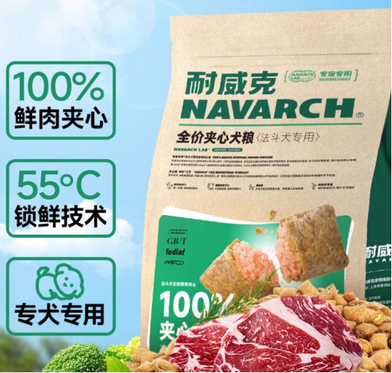耐威克狗粮的品牌理念是 “Wonderful pets,colourful life! 生活因宠物更精彩”,其使命是 “敬畏生灵,爱行天下”,致力于让宠物更健康、健美及寿命延长,核心是 “专宠专用”,即根据不同犬种、年龄、体型等特点来设计配方,满足不同宠物的口味偏好和营养需求。原料中含玉米、大麦等谷物,可能不适合肠胃敏感或过敏体质的狗狗。这款狗粮是夹心狗粮,通过鲜肉夹心设计提升适口性。