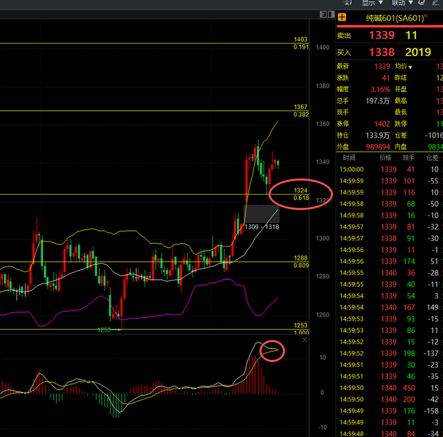 纯碱2601合约:基本面:纯碱期货价格受外部宏观情绪回暖和反内卷题材发酵提振,但基本面波动不大。铜冠金源期货指出,纯碱上游装置检修频传,下游国庆前备货意愿好,市场成交较热,价格小涨,但因现货库存高、基本面偏空,且上游检修跨期短、供给修复预期强,价格或震荡运行。技术面:纯碱在上周提示1250附近布局多单,企稳开启一路反攻之路加上反内卷政策助攻,目前短线或有调整趋势但短期还是低多为主操作建议:纯碱回踩1320不破低多为主