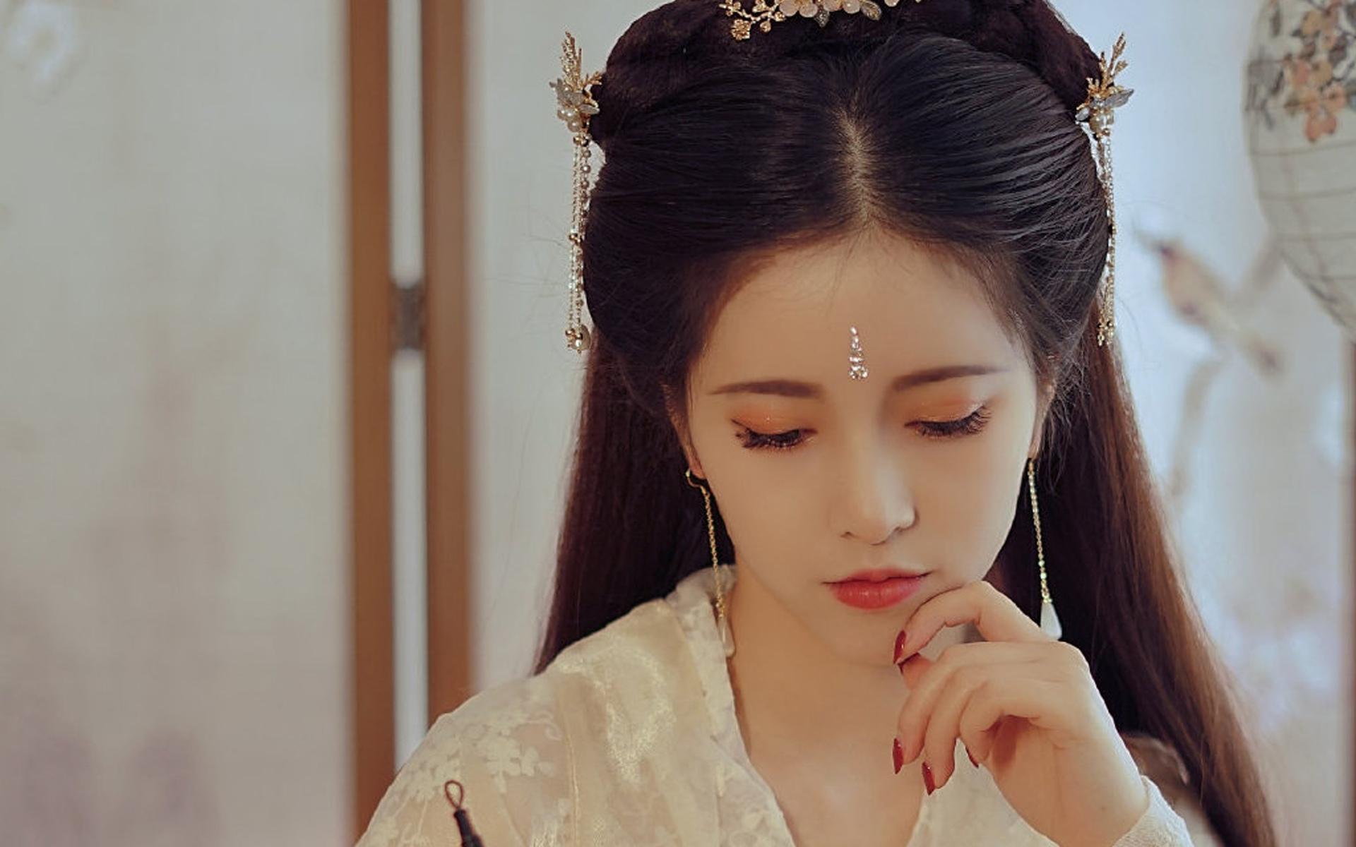 门开后,一半火红欲燃的榴花探进视野,那垂垂累累的花树下,站着位美人。