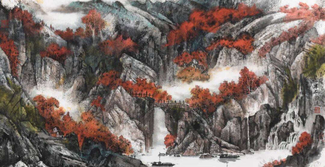 群峰泛五彩 诗意韵满峡 69×138cm 2025年