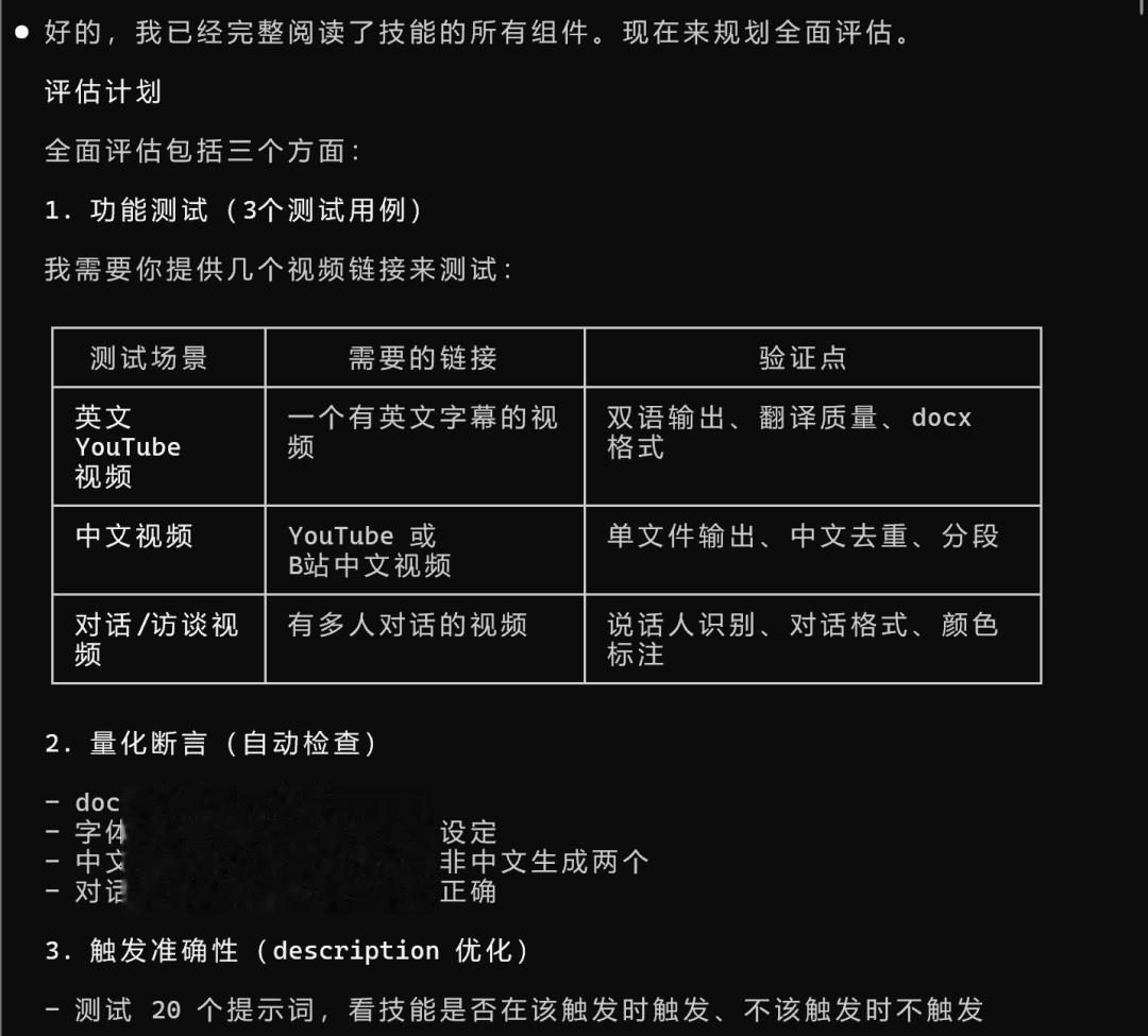 它会先把你的skill文件完整读一遍,搞清楚这个skill的核心流程是什么。