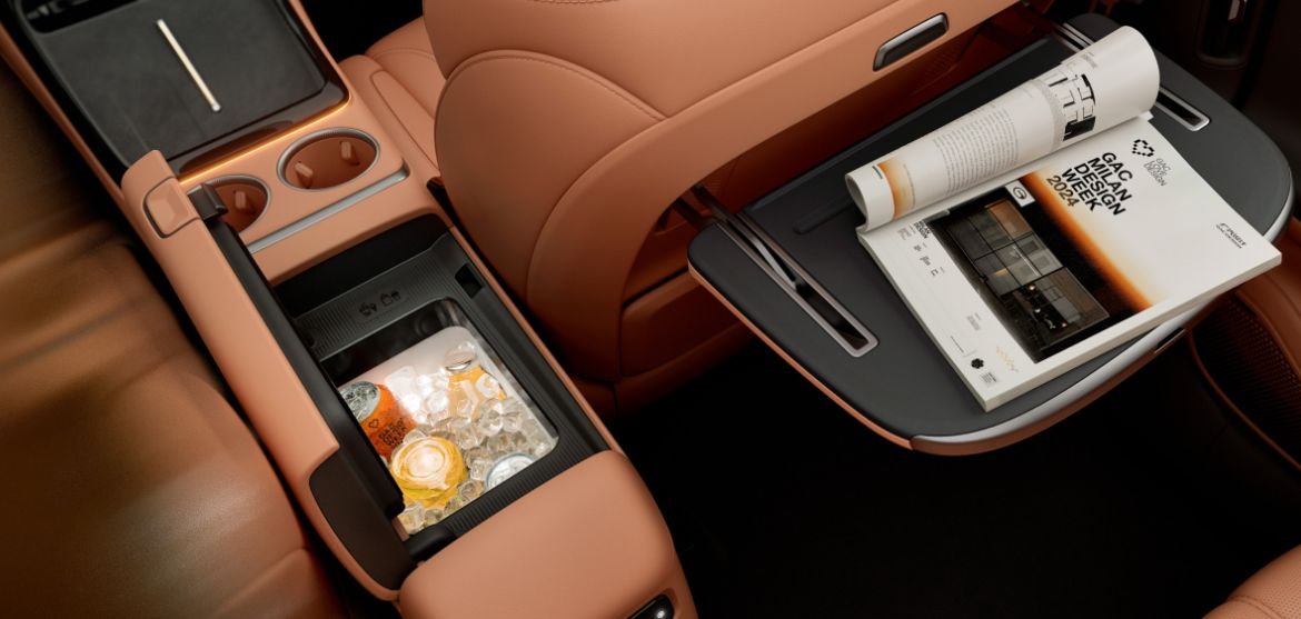 此外,全新埃安AION V在细节上也下足了功夫。中央扶手箱内置的冰箱支持冷冻、冷藏和制热三种模式,让驾驶者和乘客在旅途中随时享受到冷饮或热食的乐趣。而前排一键放倒功能、宽大舒适的前后排座椅以及主副驾座椅的按摩功能,都让乘坐体验更加舒适惬意。