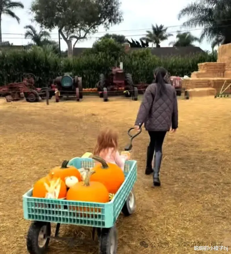 梅根一家五口出游摘南瓜,金黄色南瓜用车装,莉莉贝特公主坐车上与哥哥阿奇一同出镜!这周末就是万圣节了,为了庆祝这个充满了搞