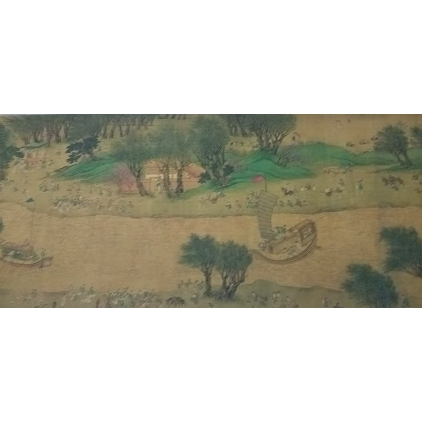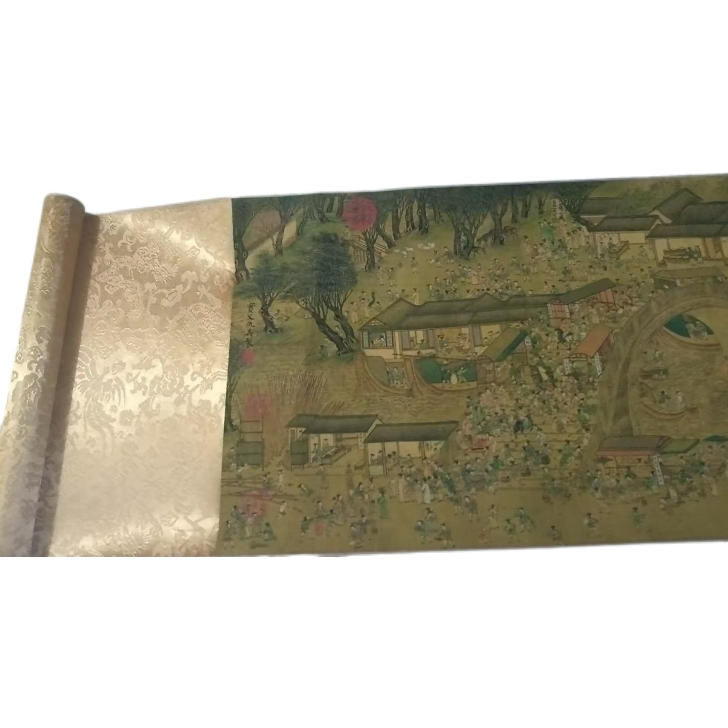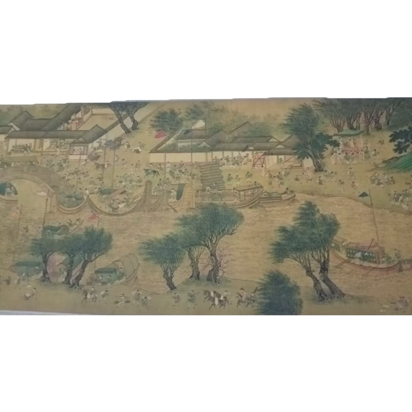 仇英版《清明上河图》采用了传统的长卷形式,以横向展开的方式,将画面内容依次铺陈。长 220cm、宽 30cm 的尺寸,为画家提供了充足的空间来展现丰富的内容。
