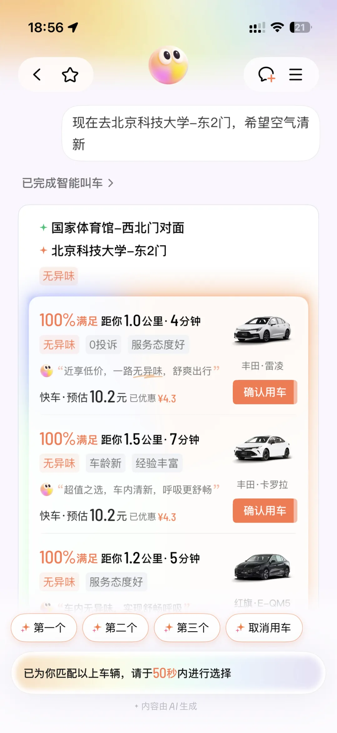 当 AI 小滴把这种“体验型诉求”变成“可选可控”的服务维度,并且能够一句话解决时,本质上就是在减少出行的不确定性。