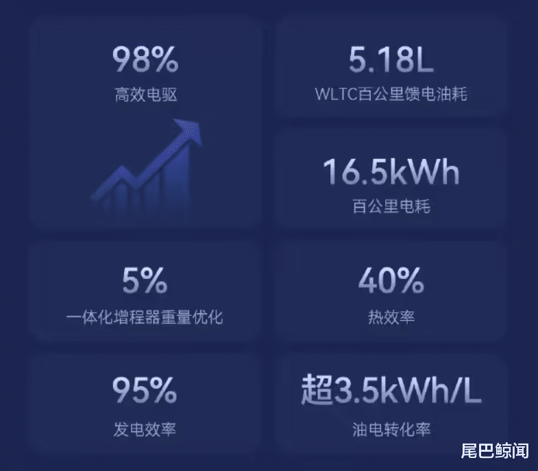 新车搭载北汽神擎增程动力,采用一体化集成设计,整体减重5%,热效率达40%,发电效率高达95%,油电转化率超过3.5kWh/L。在WLTC工况下,百公里馈电油耗为5.18L,百公里电耗仅16.5kWh。