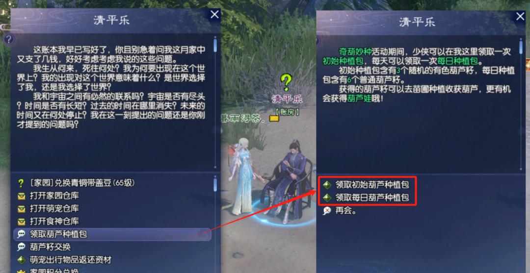 不过真正让人尖叫的是葫芦兄弟的永久时装。官方这次简直把"白嫖"写在脸上了,玩家通过家园账房NPC领个葫芦种子,浇水播种就能开出盲盒葫芦娃。开盲盒时还有概率触发世界BOSS,组队打倒蛇蝎反派就能爆出七彩葫芦叶!