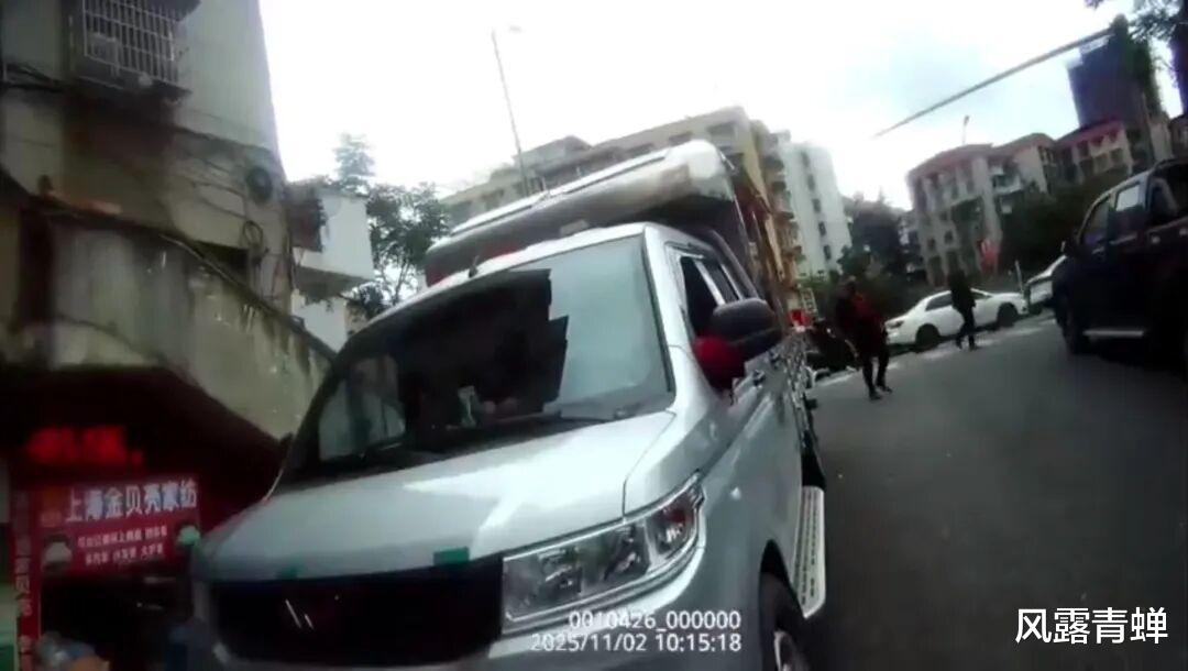 2025年11月2号上午10点10分,贵州省贵阳市乌当区分局三中队一名辅警在新添大道巡逻时,看到一辆小货车违停,并且占到卖货,妨碍道路交通。