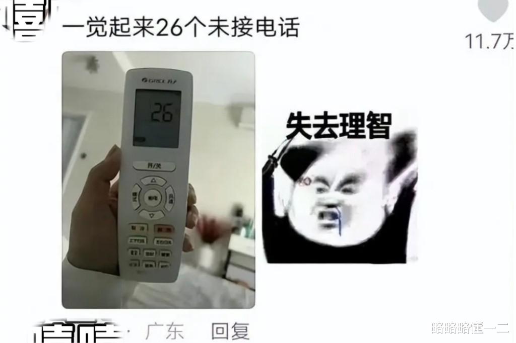 一睁眼睛后起猛了,错把空调遥控器当成了手机,一睁眼睛起来发现“手机”上有26个未接电话,上班哪有不疯的呢?