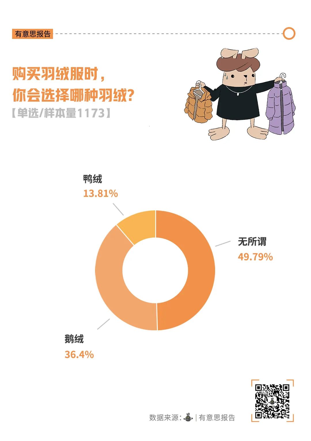 但值得关注的是,依然有近半数的消费者对绒种持“无所谓”态度——这并非不重视品质,而是将注意力转向了更核心的硬指标。