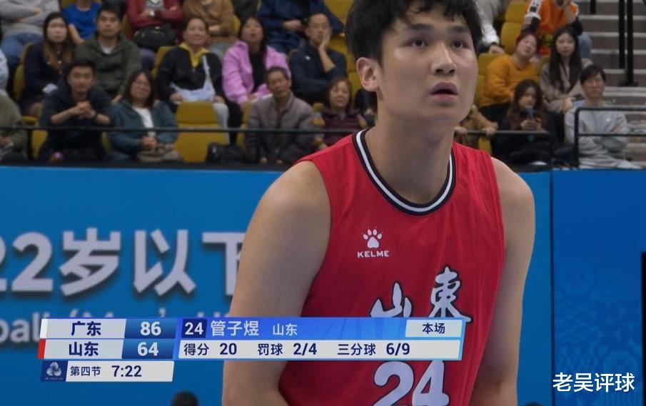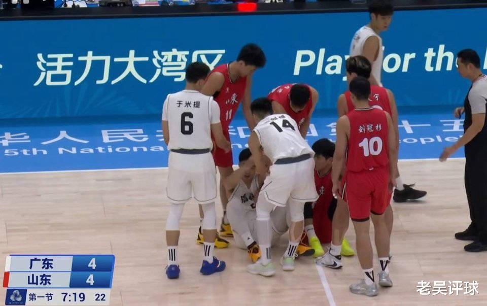 全运会U22男篮决赛,山东U22男篮迎战广东U22男篮。开局两队拼得很凶,佟佳俊和陈家政倒地拼抢球,山东队的三分彻底打开了,接连命中。尤其是管子煜手感很好,单节三分6中5。