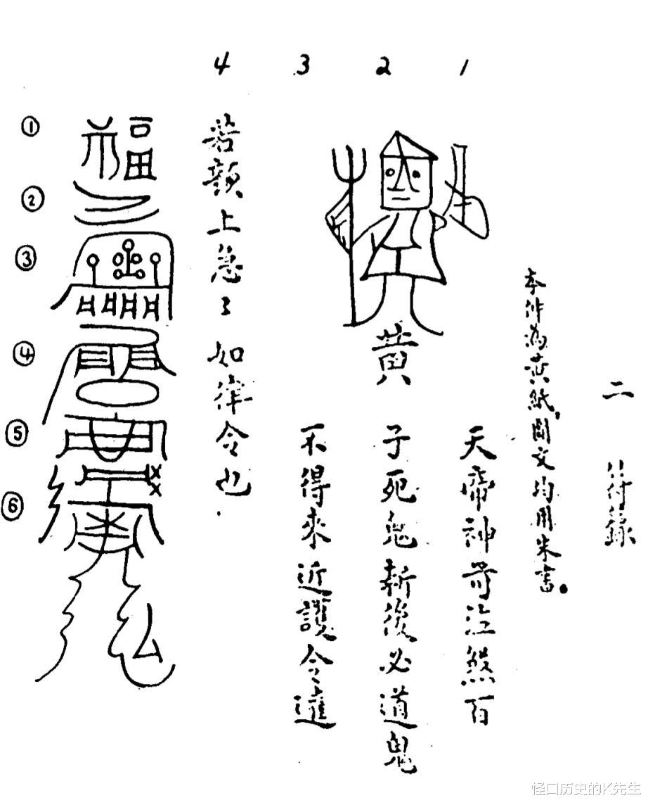 根据符箓下方的“黄”字,以及各种古代镇墓文中的记载,我们可以确定这就是“黄神”。在汉代的时候,他是个相当重要的神祗,既是阴间的管理者,主管生死簿、又是阳间的守护神,能辟邪驱鬼,可以说是连阎罗王也兼任了属于是。