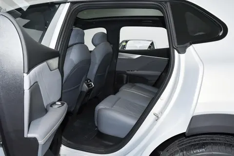 零跑 B10 尺寸 4739/1900/1680mm,轴距 2825mm,车身更长但轴距稍短。后排空间同样充裕,1 米 72 坐进去膝盖两拳左右,地板也是纯平。后备箱常规容积 510L,比深蓝稍大,可惜没有前备箱,但后排座椅放倒后能扩展到 1200L,塞孩子的小自行车都没问题。小储物空间特别多:门板能放 1L 大水杯,中控扶手箱深到能塞两把折叠伞,后排还有隐藏式杯架,小物件随手就能放。