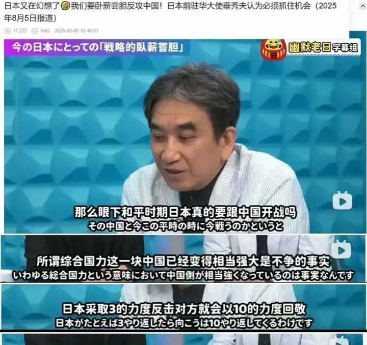 这位老兄明明白白说,现在中国太强,日本得先忍着,装孙子攒大招,等中国哪天不行了再跳出来决胜负,这话够直白吧?都不用猜他啥心思。