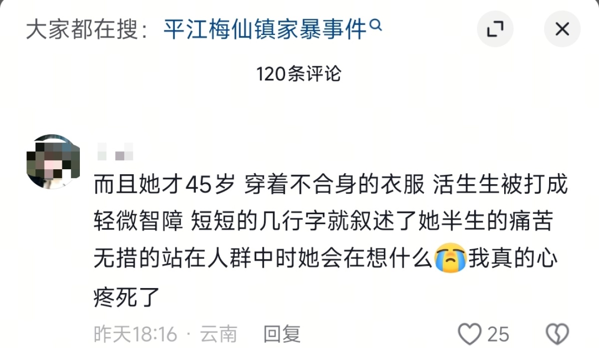 针对网络传言,有媒体曾于12月5日致电平江县梅仙镇政府及县妇联等部门进行核实。相关部门工作人员当时回应称,已介入调查,伤者正在医院接受治疗。对于网络流传的受害者“被殴打导致智力出现问题”等说法,工作人员表示详细情况需待调查结束后统一回应。