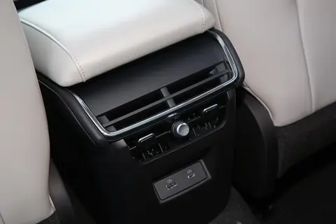 后排地台中央的凸起非常小,大概只有一个手机的高度,这极大地提升了中间位置乘客的乘坐尊严感,即使满员出行,中间的乘客也能获得一个相对舒适的坐姿。此外,后排配备了独立的空调出风口和两个USB-C快充接口,充分考虑了后排乘客的需求。