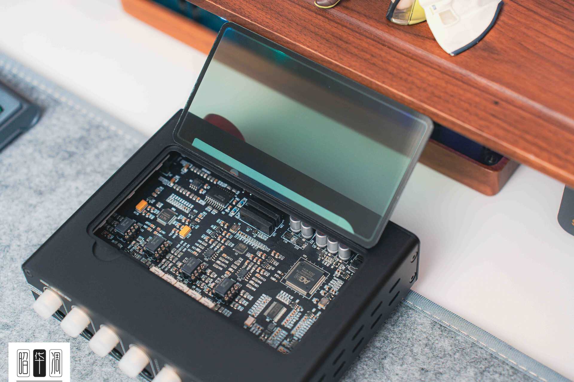 ▼把 Q11PRO 放在桌面上,第一眼最抓人的其实不是它的屏幕,而是顶部的设计。以前我们想换运放,得找螺丝刀拆外壳,搞不好还会弄破保修贴,体验极差。但声优创这次显然是开了窍,设计了一个非常巧妙的可掀盖式顶部玻璃盖板 。掀开盖子就能轻松更换内部的 4 颗运放 ,在不破坏保修的前提下尽情折腾音色,这设计必须给个好评。
