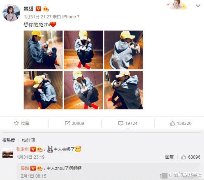 而景甜一脸委屈蹲在门口,发微博表达思念,想你的兔子,也恰恰印证了这一点;
