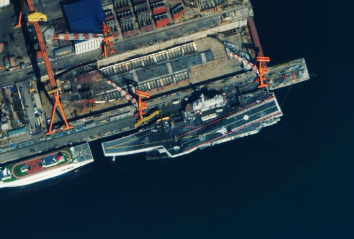 日本媒体翻出去年11月的卫星图,说中国船坞里已经有东西封顶了。