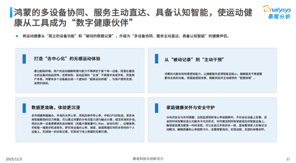 比如报告里提到的“医疗健康”赛道。传统App就是个数据孤岛。但在鸿蒙上,你可以做一个能打通手表、手机、智慧屏甚至体脂秤的应用。用户在家锻炼,智慧屏是AI教练,手表实时测心率,手机记录卡路里 。这已经不是App了,这是报告里说的“数字健康伙伴”。这种杀手级应用体验,在老平台根本没法实现。