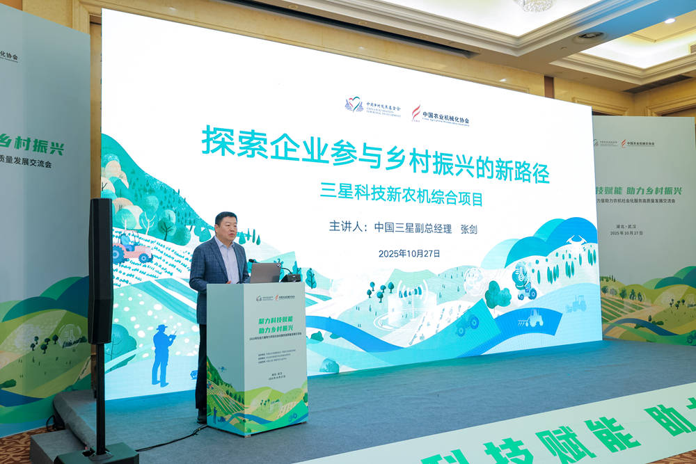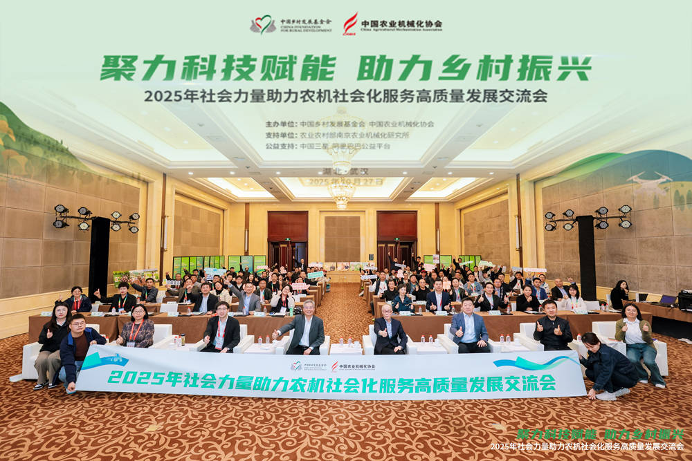 10月27日,“聚力科技赋能 助力乡村振兴——2025年社会力量助力农机社会化服务高质量发展交流会”在武汉举办。本次会议由中国乡村发展基金会、中国农业机械化协会联合主办,由农业农村部南京农业机械化研究所予以支持,中国三星、阿里巴巴公益提供公益支持。旨在搭建一个多元参与、深度交流的平台,共同为助力农机社会化服务高质量发展和乡村全面振兴贡献智慧与力量。