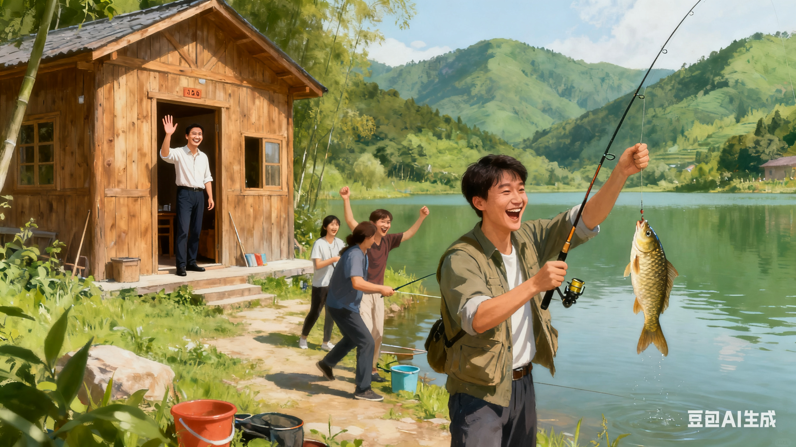 李栋本是 2018 年的高中老师,离婚后心灰意冷,辞掉稳定工作、卖掉城里房子,跑到皖南韩家村承包水库和山头,开起垂钓农庄。