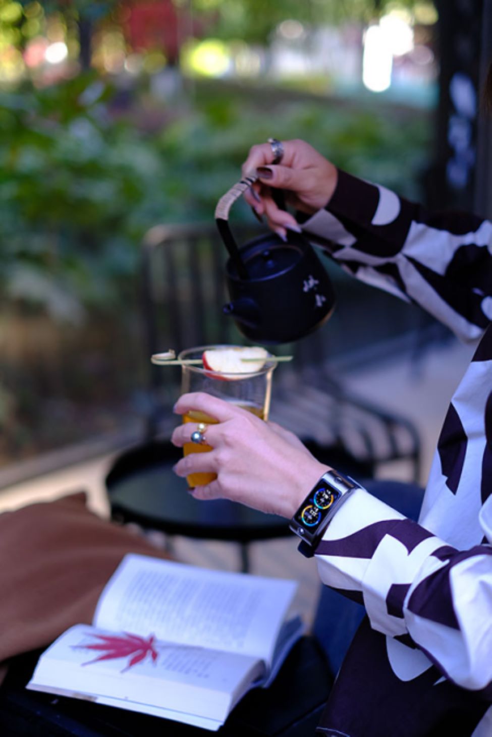 运动套装+路卡:无论是瑜伽服还是速干T恤,路卡轻若无物,运动无负担。它能监测你的心率、睡眠,运动后也能随时关注身体状态。