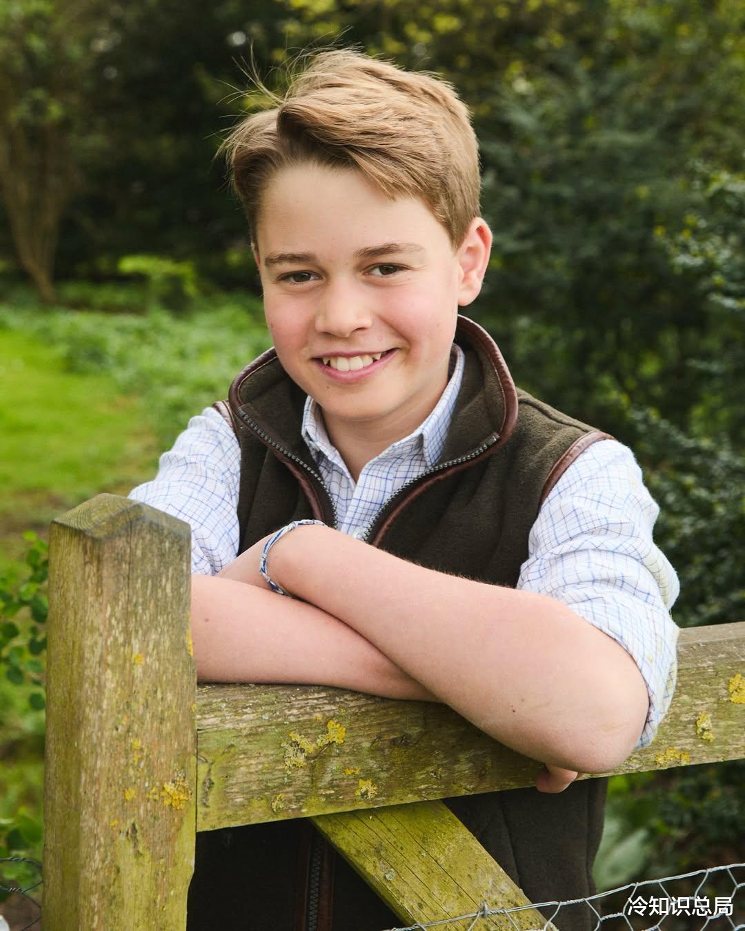 在乔治王子的最新照片中,乔治身穿绿色夹克,内搭了一件格子衬衫,手上戴了一根简单的编织手绳,笑容自然大方。