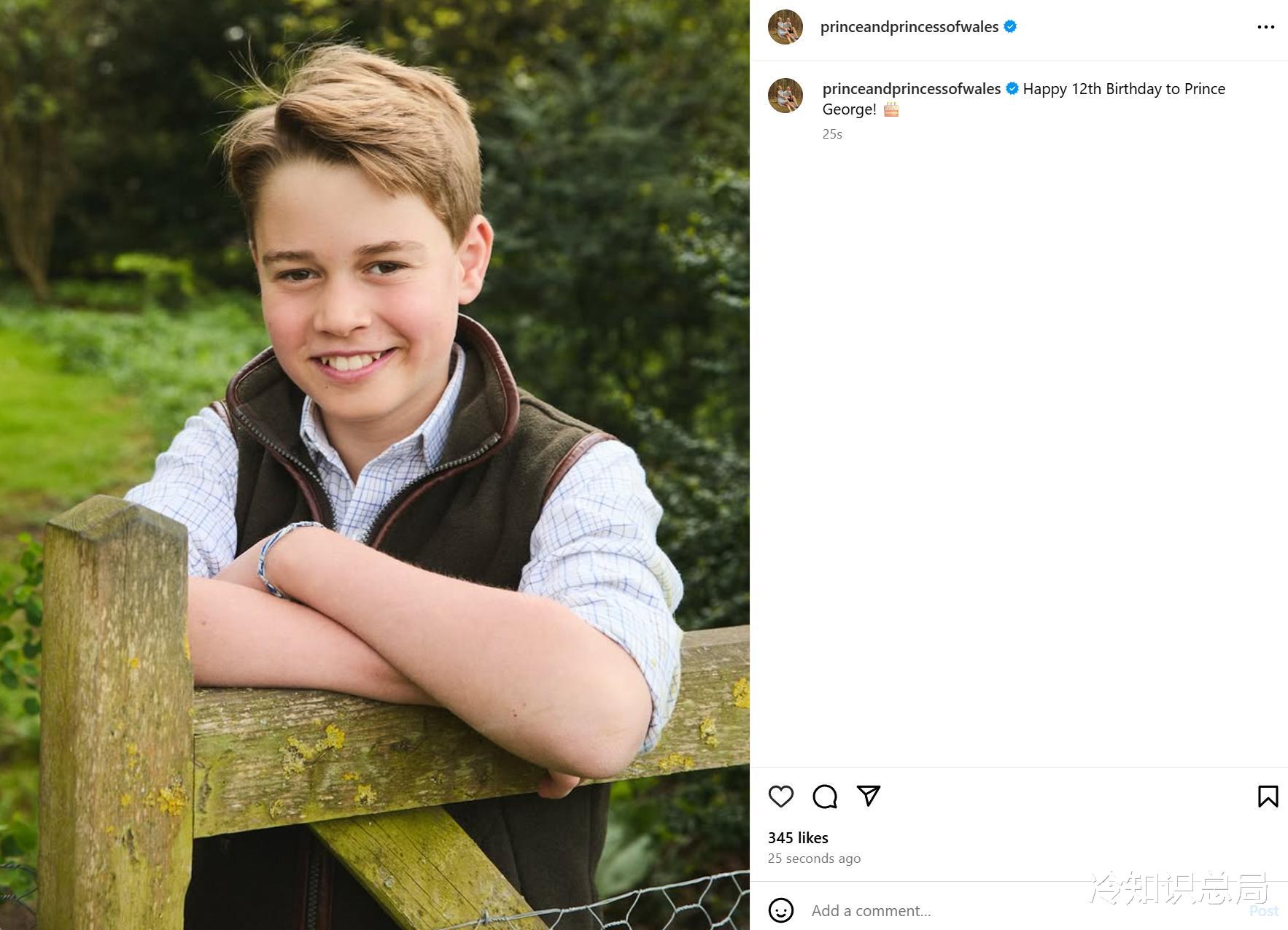 当地时间7月22日,凯特王妃最新发布了乔治王子的12岁生日照,并配文:乔治王子12岁生日快乐。