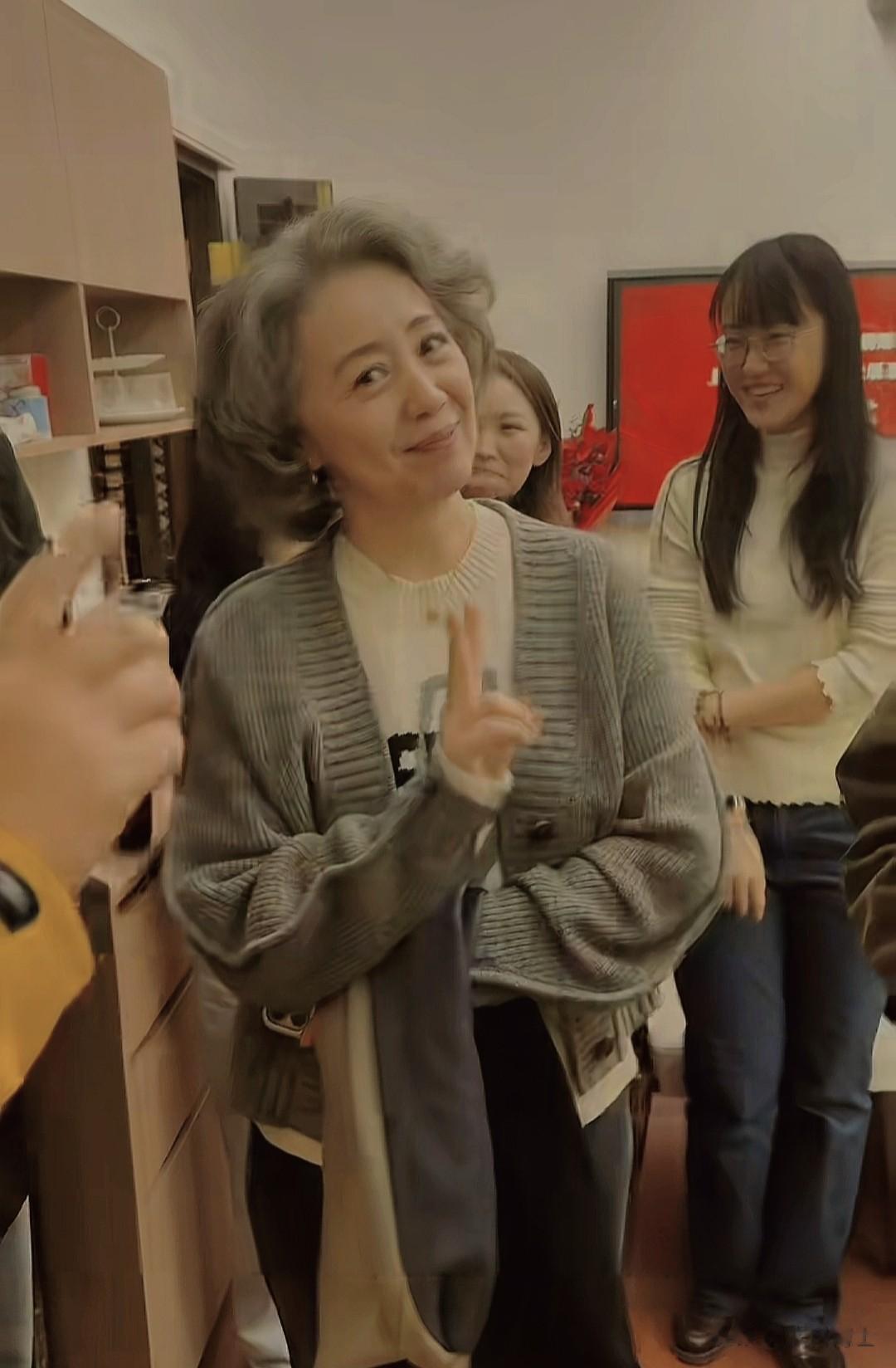 任程伟旁边,一位蓬松短发造型的女士,她衣着时尚,头发几乎全白,虽看上去不年轻,但是气质非常优雅,浑身上下散发着女性的成熟美。
