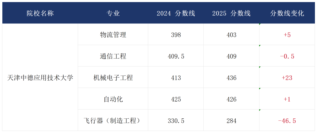 天津中德应用技术大学:整体下降,飞行器制造工程专业降 46.5 分(2024:330.5→2025:284)。