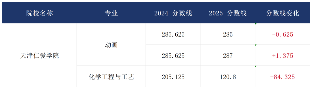 天津仁爱学院:整体下降,化学工程与工艺专业降 84.325 分(2024:205.125→2025:120.8)。