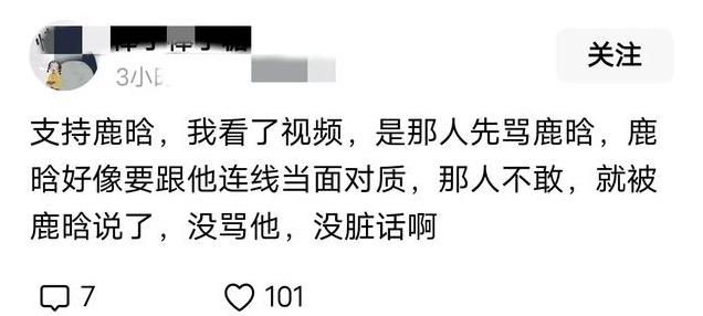 不过,有网友说,这个不能怪鹿晗,是那个人先开骂,后来鹿晗连线要他对质,但是那个人不敢。