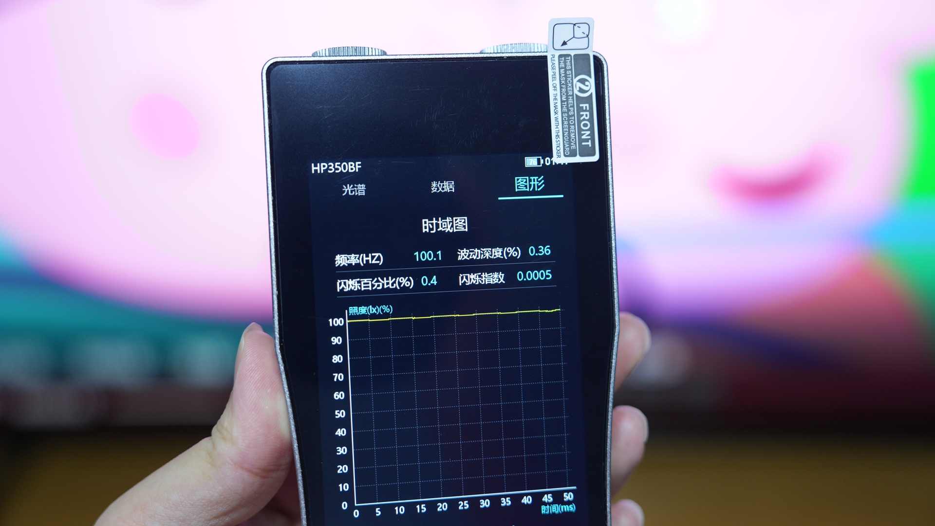 频闪表现:实测播放动画片,Q10L Pro用专业频闪测试仪实测,波动深度基本在1%以内,无可视频闪,高护眼。
