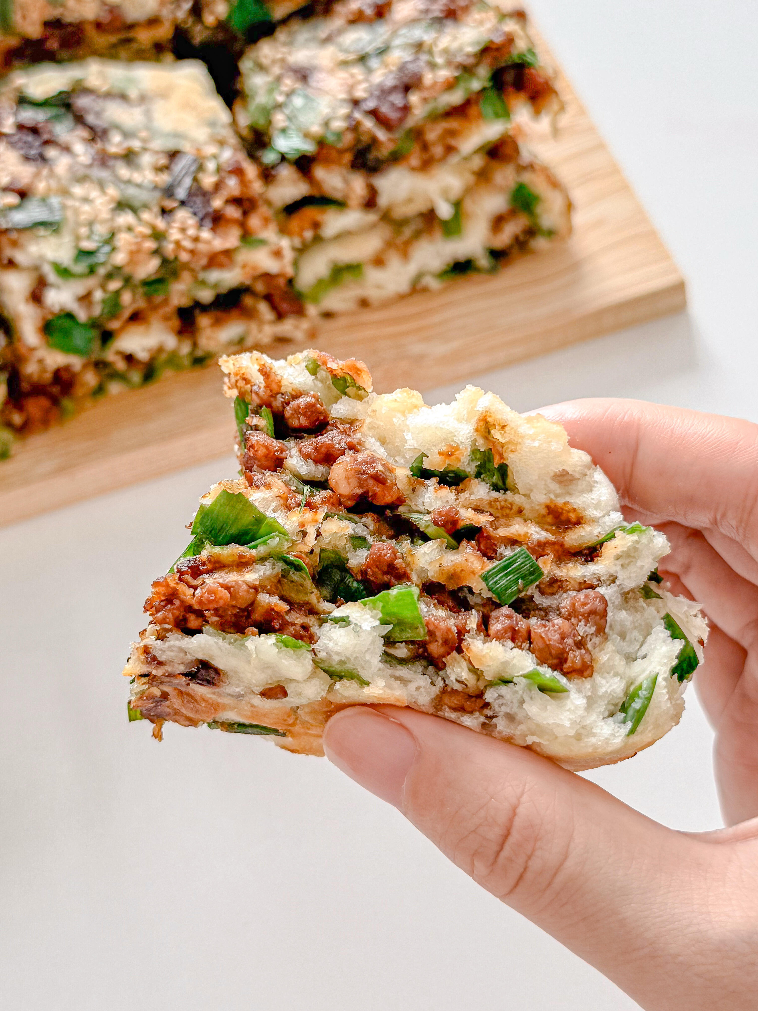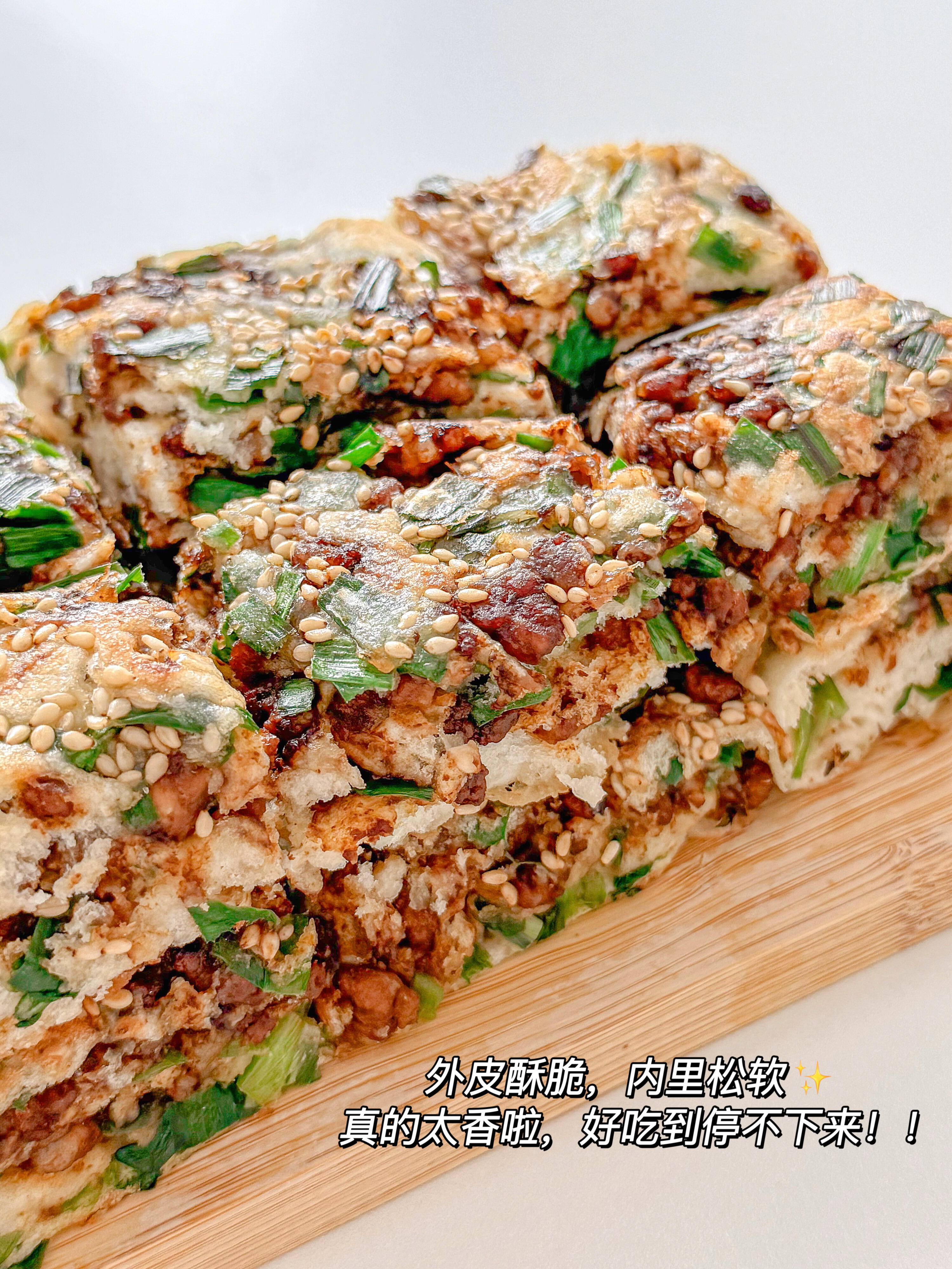 煎好的韭菜牛肉发面饼,切成块就可以享用了。看这金黄酥脆的外皮,闻这扑鼻而来的香气,是不是已经迫不及待想要咬一口了?咬下去,外皮酥脆掉渣,内里松软可口,韭菜和牛肉的完美结合,让人回味无穷!