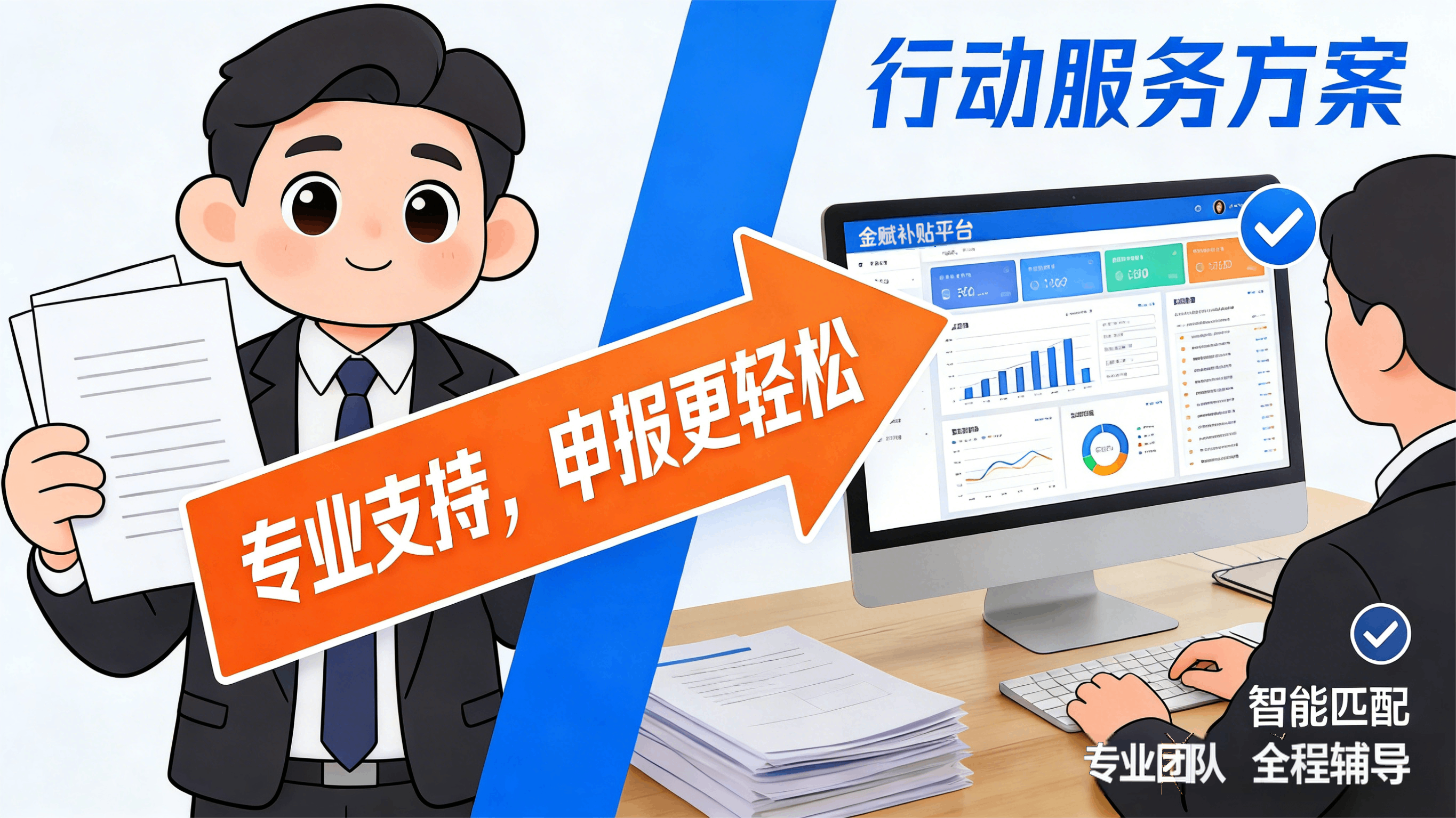 机会总是留给有准备的人。面对这样高价值的专项补贴,专业的事可以交给专业的人来帮忙。深圳金赋科技就是您身边的政策顾问,我们打造的“金赋补贴平台”能快速帮您智能匹配此类信息。怕条款复杂?担心材料搞不定?我们的专业团队可以提供全程辅导,帮您理清思路、准备材料,稳稳抓住这波红利!