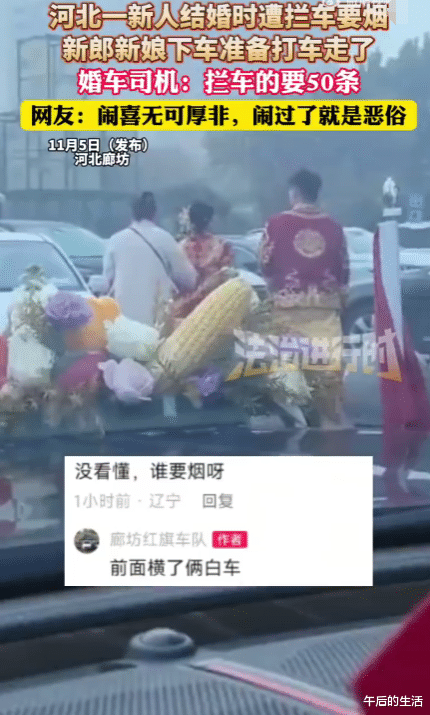 喜事变闹剧:河北婚车拦路索烟事件背后的民情拷问 11月5日清晨,河北某酒店停车场内,本该洋溢着喜气的婚车车队陷入僵局。拦车者以"讨喜"为名,向新人索要50条香烟作为"过路钱",并开出"50条普通烟或10条高档烟"的二选一条件。这出荒诞剧最终以新人弃车离去收场,留下未结算的车费与未解的争议。