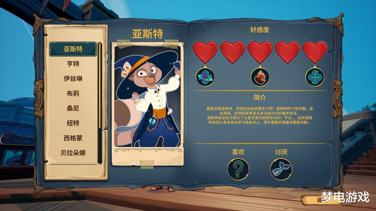 当然,比起合理搭配配方与资源制作魔药辅助战斗,本作更有趣的玩法还是刷出素材后将素材带出局外。玩家可以将其当做礼物送给学院NPC们以试探出角色的喜好,从而增加其好感度。