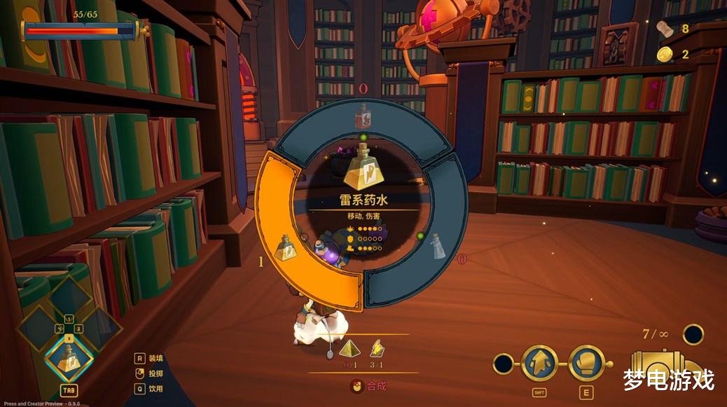 虽然在实战表现上,这一机制本质上完全就是根据资源随时合成道具,但在对局之外,玩家可以解锁更多的魔药配方,并且在已经解锁的配方中自由选择带入局内的药水以及不同药水所使用的合成素材。玩家所选择的合成素材,不仅会影响局内素材的掉落种类,还会影响魔药的具体使用效果。
