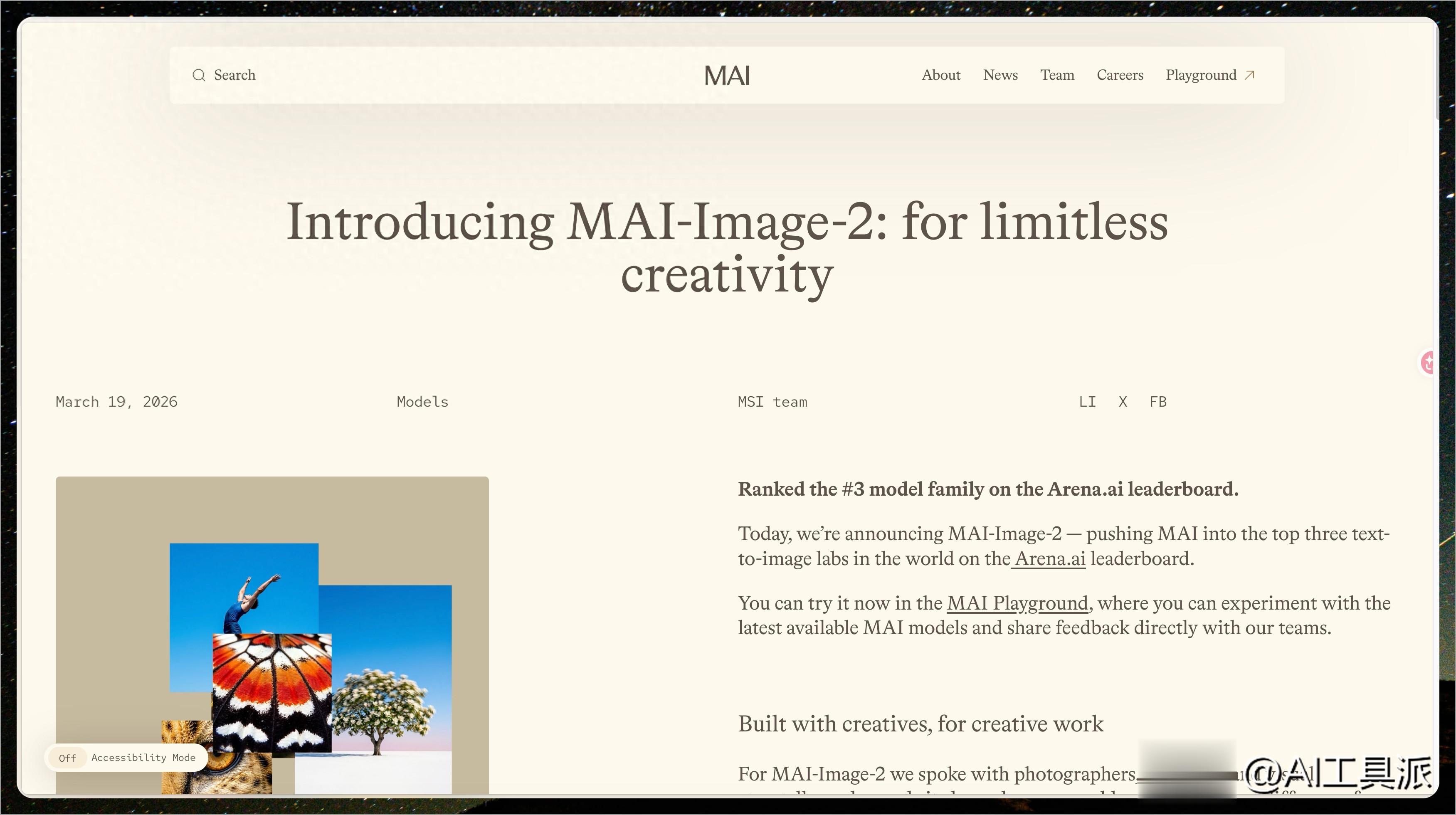 昨天微软 AI 团队发了个新品——MAI-Image-2。