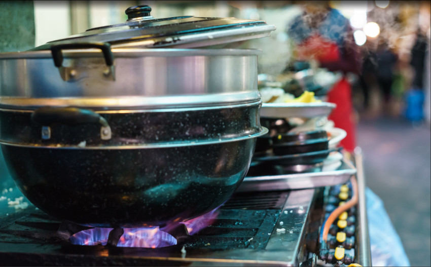餐饮场所内的燃气表、热水器等燃气设施及其附属管道,都不能进行包裹处理。同时,不要在燃气设施上随意捆绑、悬挂物品,防止因操作不当造成燃气泄漏,给厨房安全埋下隐患。