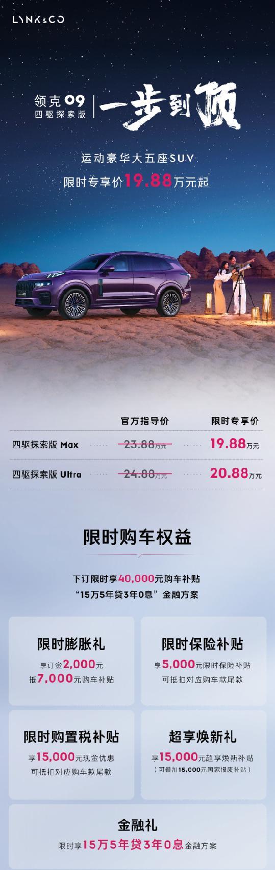 燃油SUV市场迎来"破局者"!领克09四驱探索版19.88万起重塑价值标杆