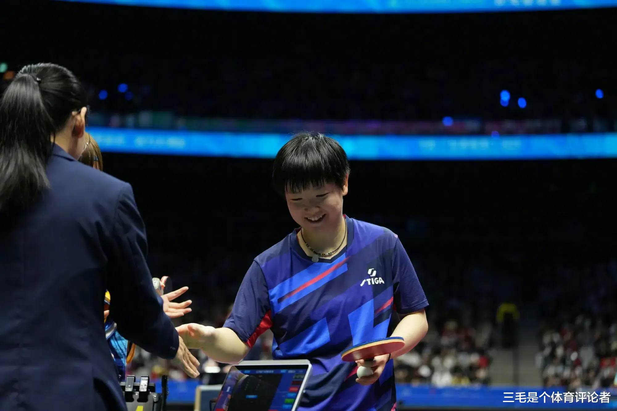 而孙颖莎,也发挥了极度稳定的心态和心理素质,曾被人诟病的反手相持能力,也越来越稳定,发球变化和正手的实力非常犀利。