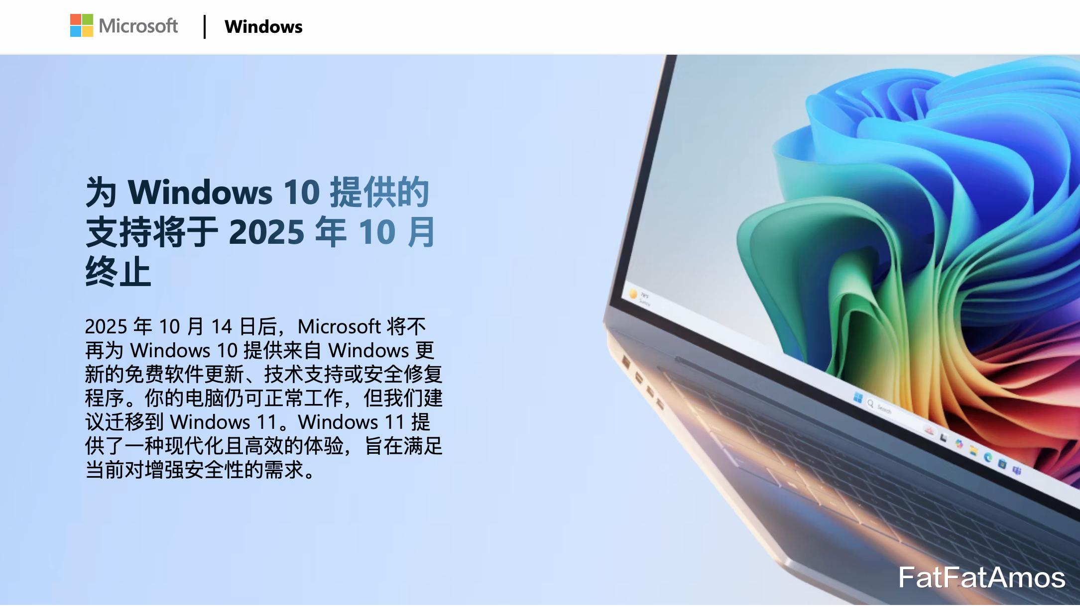 微软:Windows 10支持将于 2025 年 10 月 14 日结束。https://support.microsoft.com/zh-cn/windows/windows-10