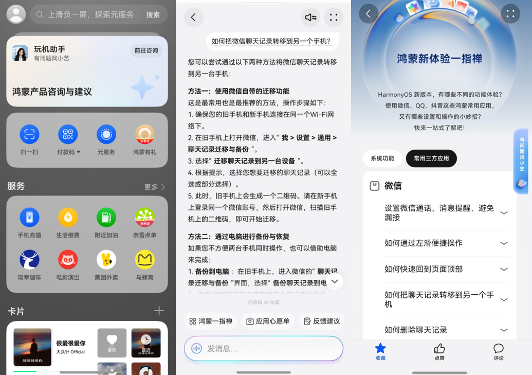 最后提醒大家,如果在鸿蒙6使用过程中有任何问题或相关建议,可通过手机桌面右滑进入华为负一屏>点击“鸿蒙产品咨询与建议”动态卡片>在对话界面向小艺提问,也能点击“鸿蒙一指禅”“应用心愿单”“反馈建议”选项,获取专属帮助或提交使用建议。