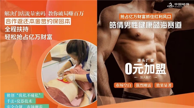 基于多年的市场发展,皓倩形成了规范化、规模化、系统化、连锁化男性健康品牌,采用共享一体系统化帮扶门店拓、锁、留,让门店业绩快速倍增,抢占市场,为千万男性提供安全、高效的健康养护方案。