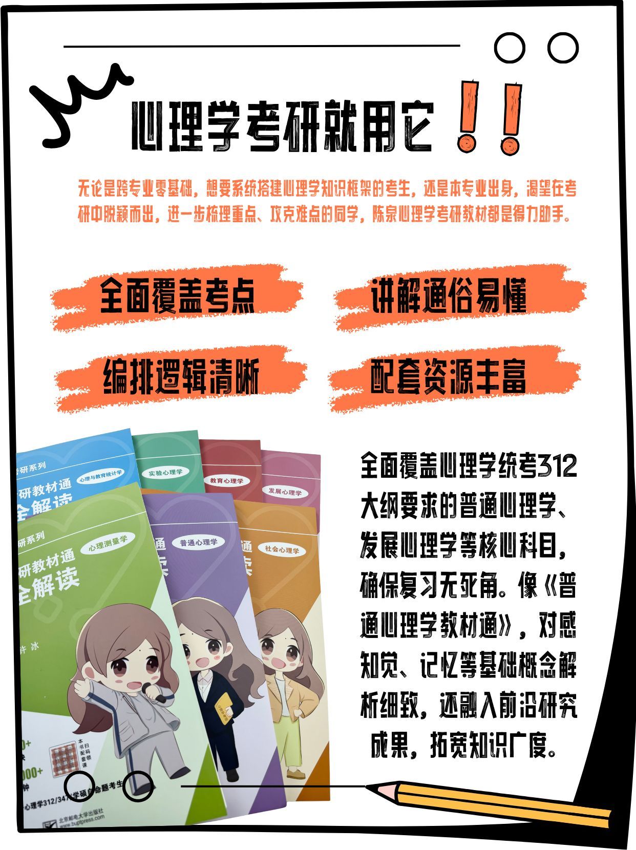 心理学考研党别慌!🚀这本教辅把普心、发心考点拆成“人话”,统计公式配着例题讲,实验设计标清得分点。不用啃厚教材,碎片时间就能刷考点,还附真题高频考点表,背完直接套题❗❗帮你把“看不懂”变成“拿分稳”,复习效率直接拉满~