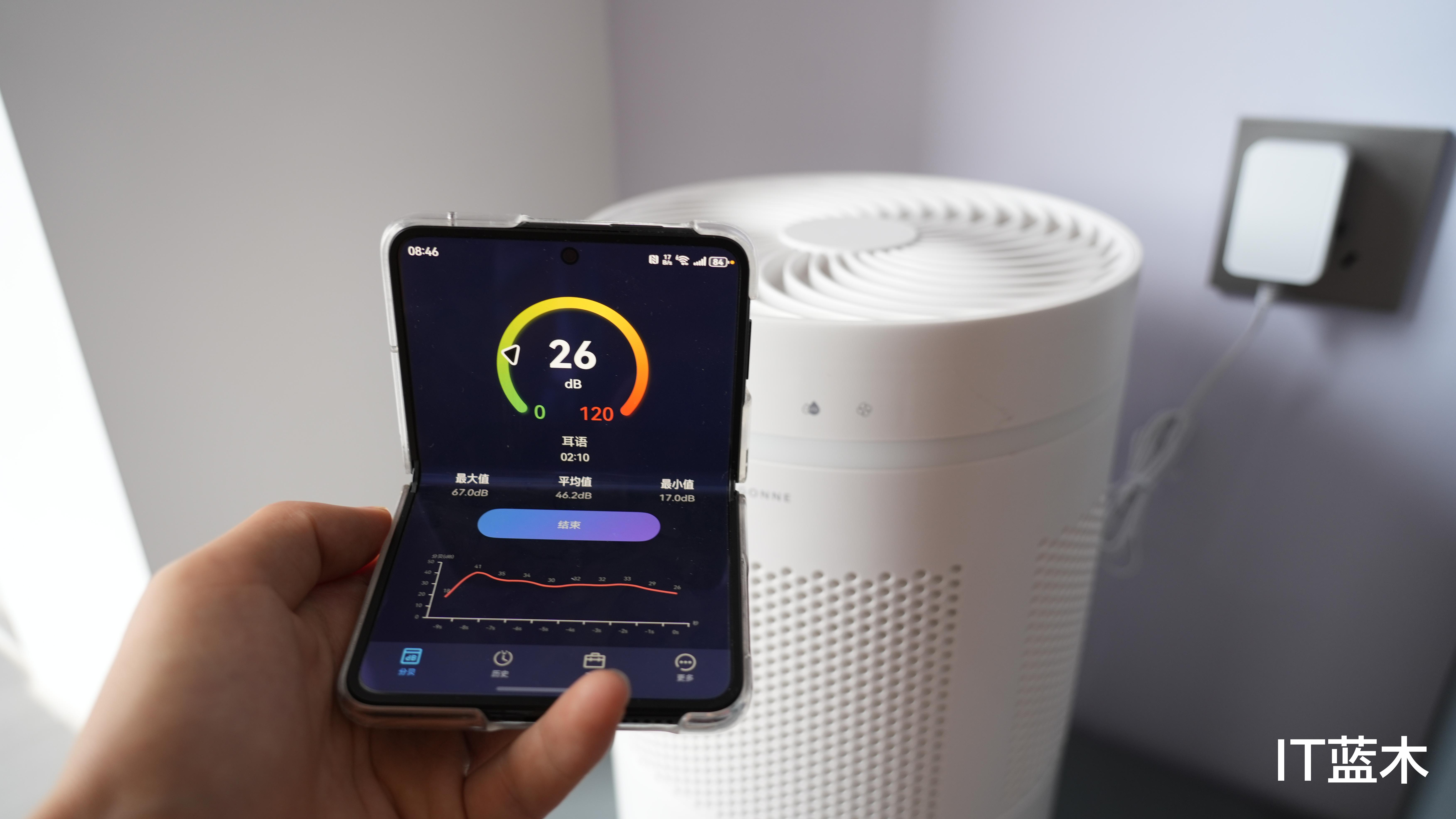 加湿器的噪音很小,实测睡眠模式的分贝仅有26,这是一个极其安静的区间,是一个非常理想的安静睡眠环境,机身设计简约,放在桌面或地面都不突兀。
